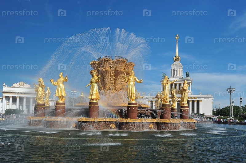 Вид на фонтан Дружбы народов в парке ВДНХ в Москве