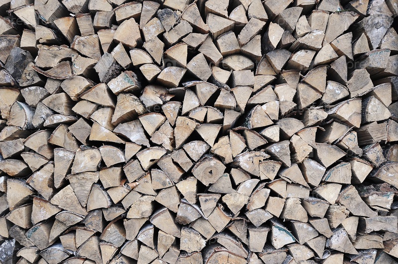 Березовые дрова, сложенные в поленницу — запасы дров на зиму