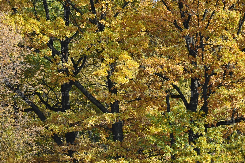 Желто-зеленые дубовые листья в осеннем парке