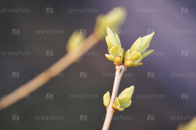 Весенняя ветка с распускающимися листьями