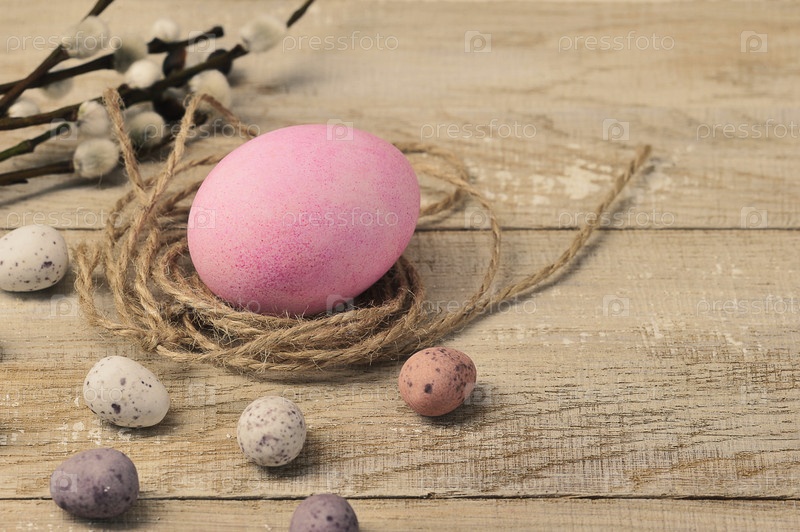 Раскрашенные пасхальные яйца на деревянном фоне