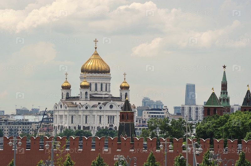 Вид на Кремлевскую стену и Храм Христа Спасителя в Москве