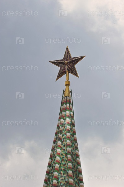 Красная рубиновая звезда на Спасской башне Кремля на Красной площади в Москве