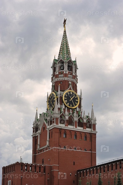 Вид на Спасскую башню и Кремль на Красной площади в Москве