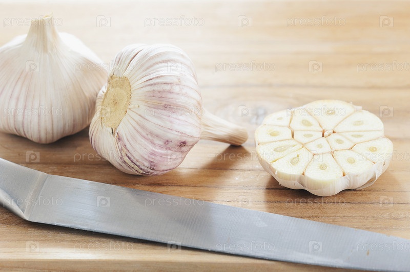 Фото натюрморта с чесноком - чеснок целый и разрезанный пополам