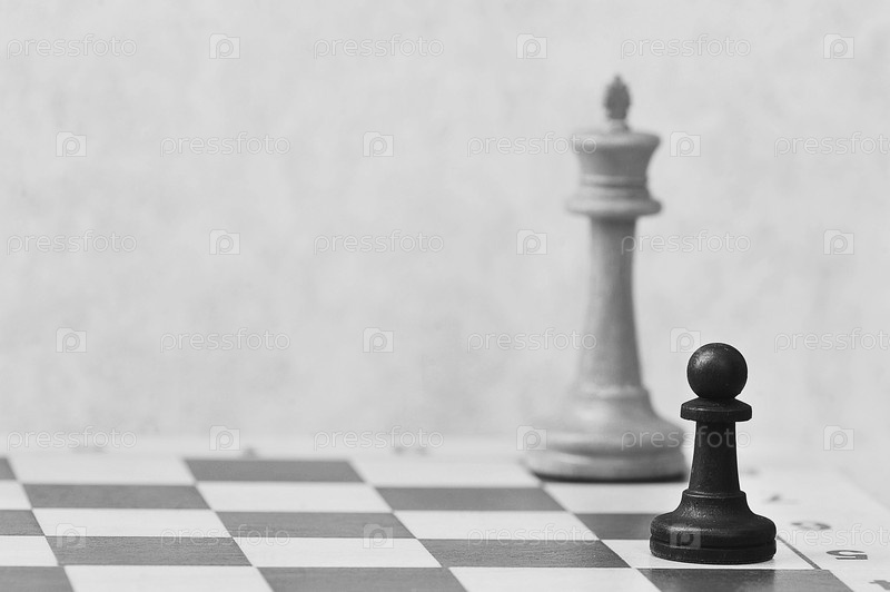 Шахматы на шахматной доске — белая пешка перед черным королем