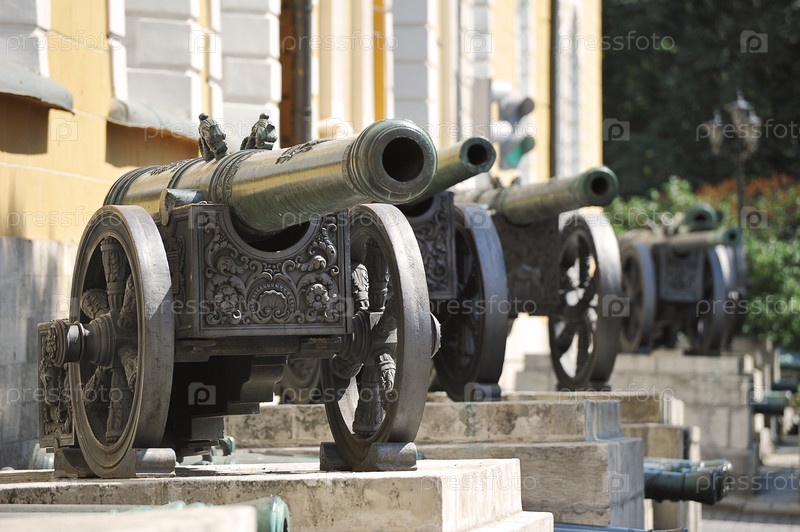 Старинные бронзовые пушки на территории Кремля в Москве