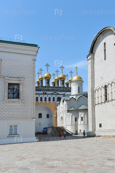 Вид на золотые купола на Соборной площади Кремля в Москве