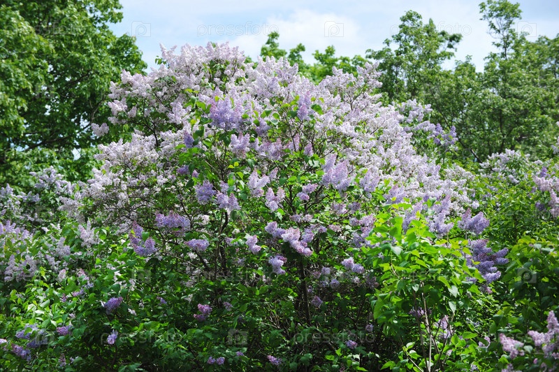 Цветущая сирень на фоне весенних цветов в парке
