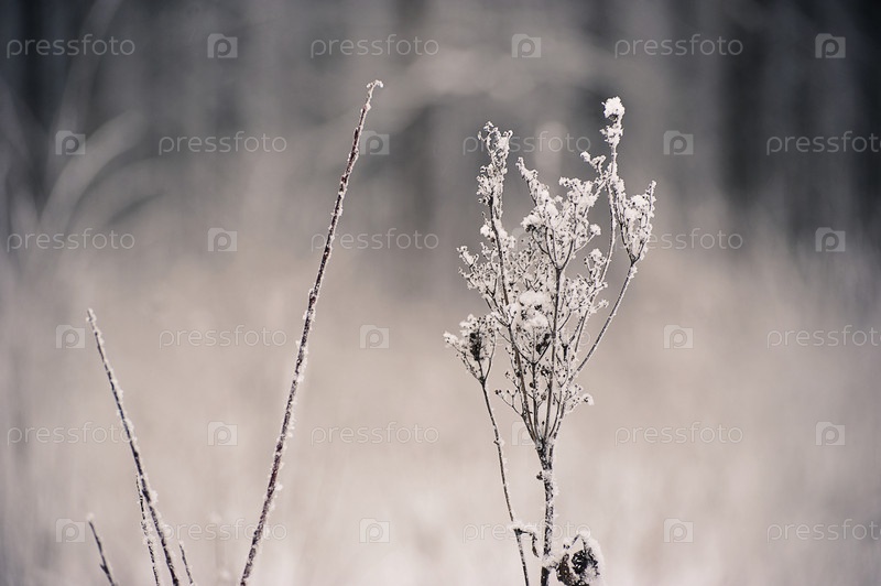 Ветки травы после снегопада – в снег и мороз