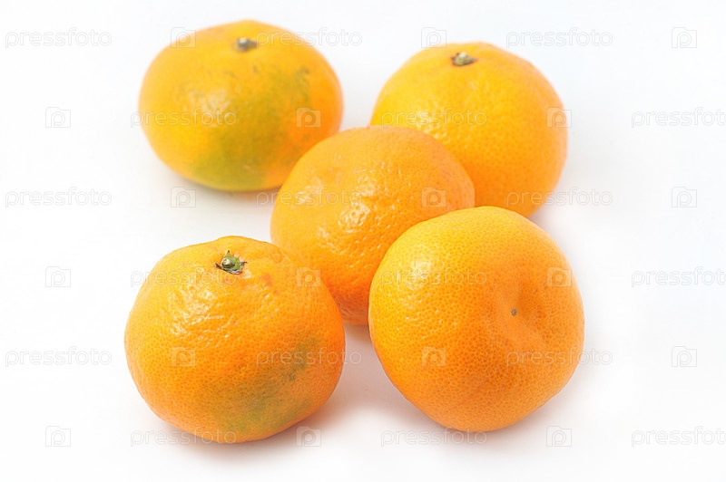 Группа мандаринов на белом фоне