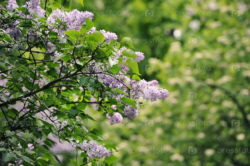 Цветущая сирень на фоне весенних цветов в парке
