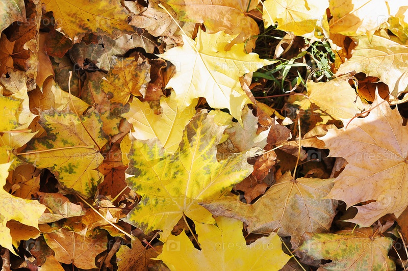 Осенний пейзаж - опавшие листья в парке лежат на земле