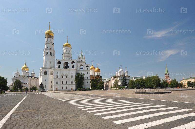 Вид на церкви и звонницы на Соборной площади Кремля в Москве