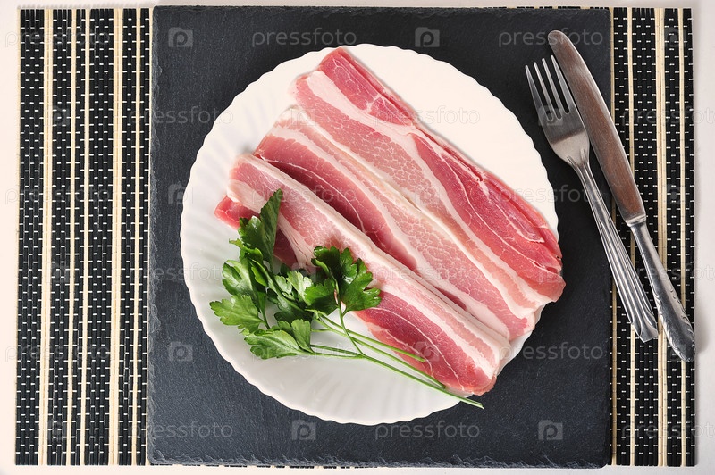 Свиная грудинка с петрушкой на тарелке — вид сверху