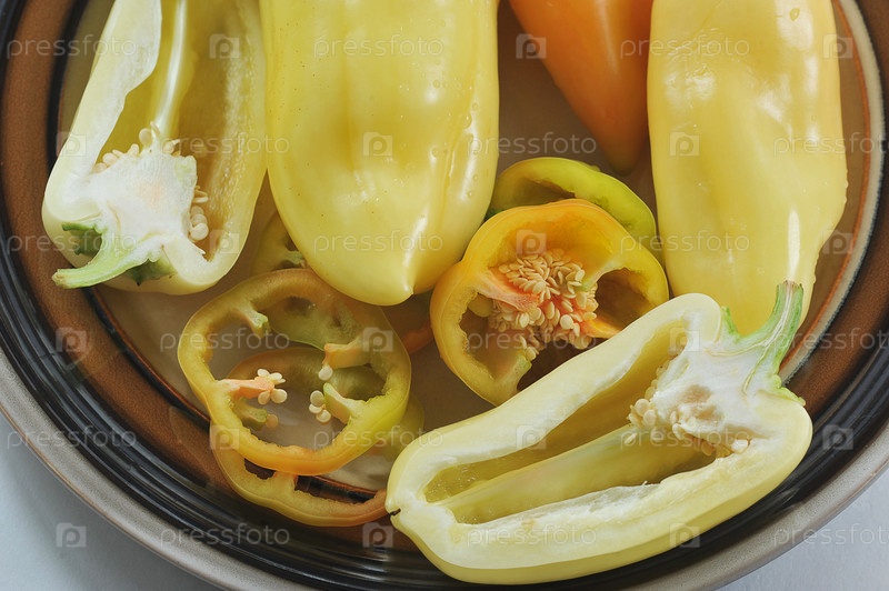 Сладкий желтый перец на глиняной тарелке