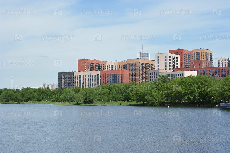 Вид на Серебряно-Виноградный пруд и жилой квартал в Измайлово, Москва