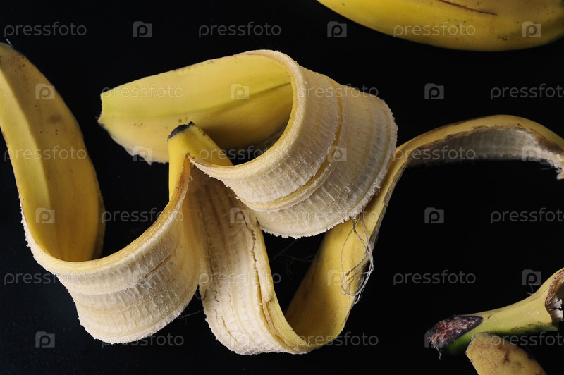 Желтая банановая кожура на черном фоне
