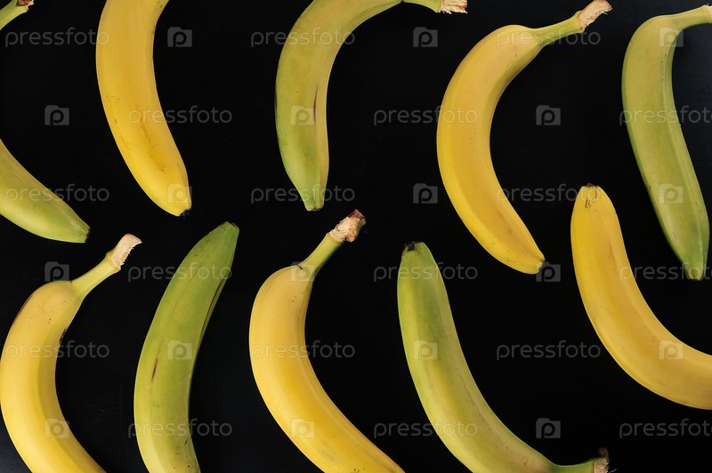 Зеленые и желтые бананы на черном фоне