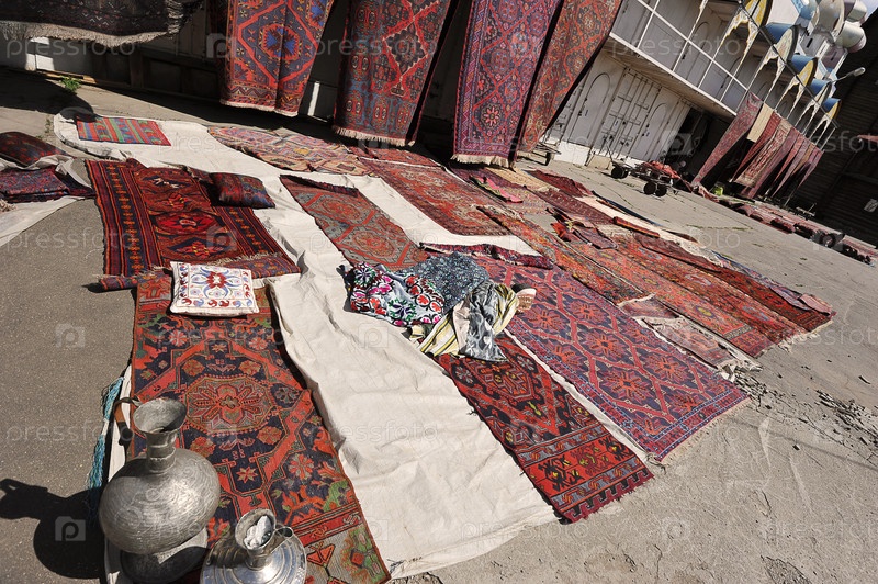 Торговля восточными коврами на рынке в Измайловском кремле в Москве
