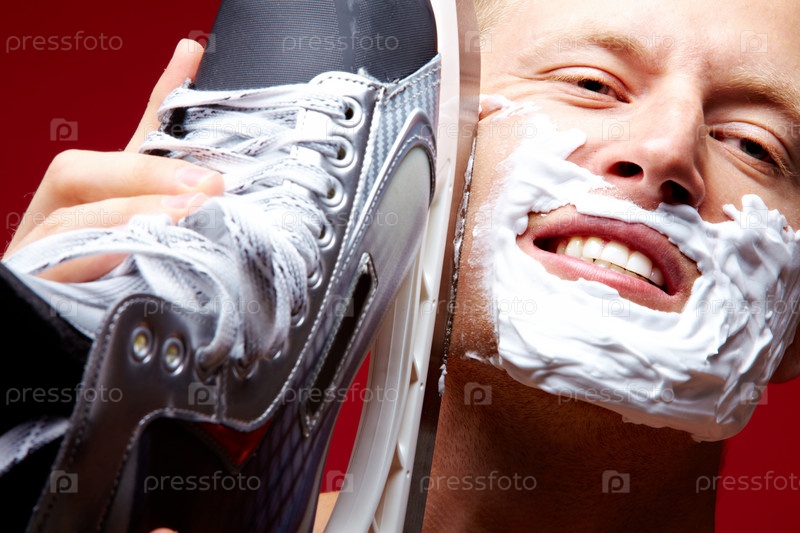 Мужчина бреется лезвием конька