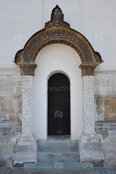 Дверь с каменными сводами Архангельского собора на Соборной площади Кремля в Москве