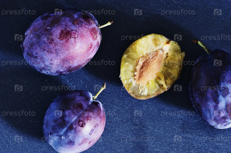 Спелые сливы на черном фоне