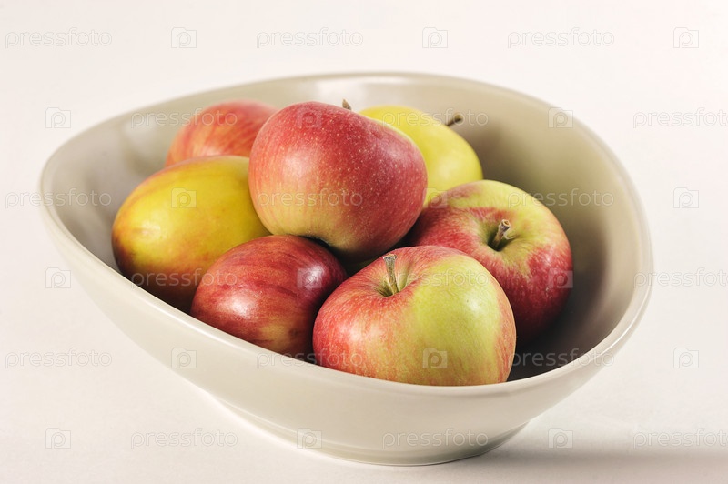 Спелые красные и зеленые яблоки в глубоком блюде