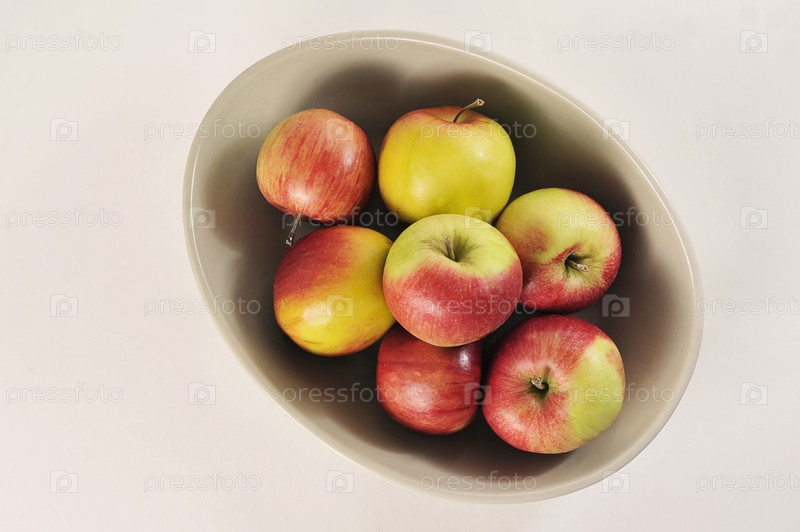 Спелые красные и зеленые яблоки в глубоком блюде