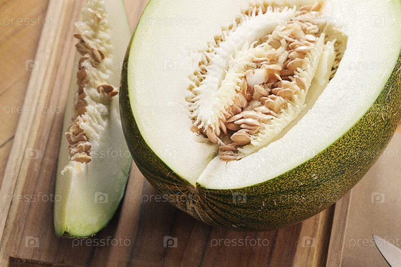 Нарезанная дыня, ломтик дыни на деревянном фоне