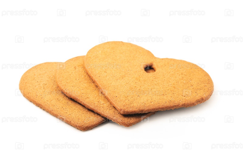 Имбирное печенье в форме сердца, изолированное на белом фоне