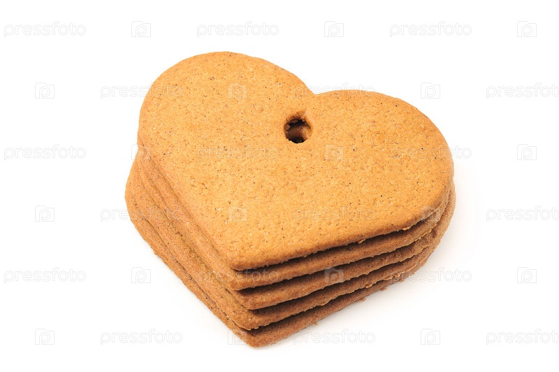 Имбирное печенье в форме сердца, изолированное на белом фоне