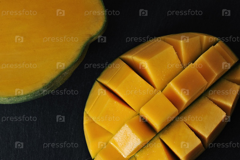 Зелено-желтое манго на черном фоне