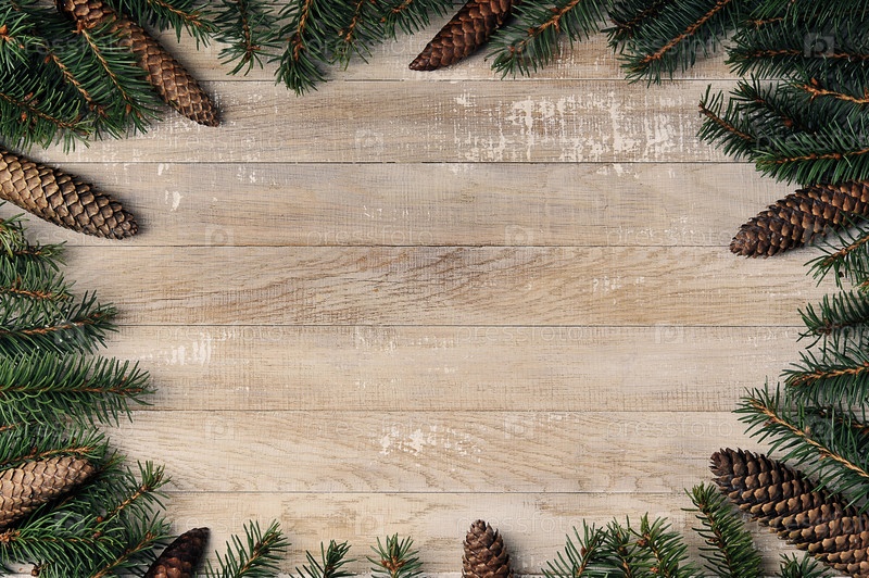Рождественский фон с елками и шишками