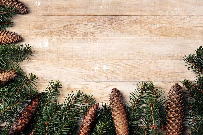 Рождественский фон с елками и шишками