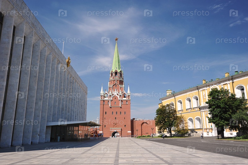 Вид на Троицкую башню Кремля в Москве