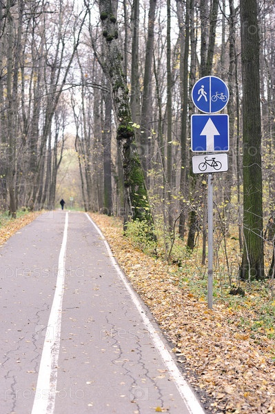 Спокойный осенний парк с опавшими листьями на пути