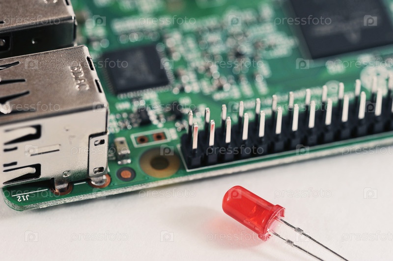 Микрочип – электронная плата с разъемами и красным светодиодом