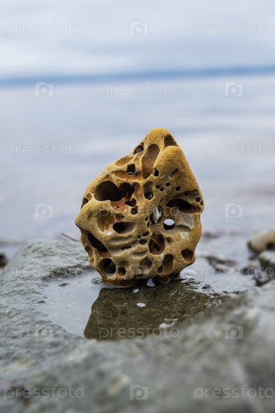 Морские камни на пляже в пасмурную погоду