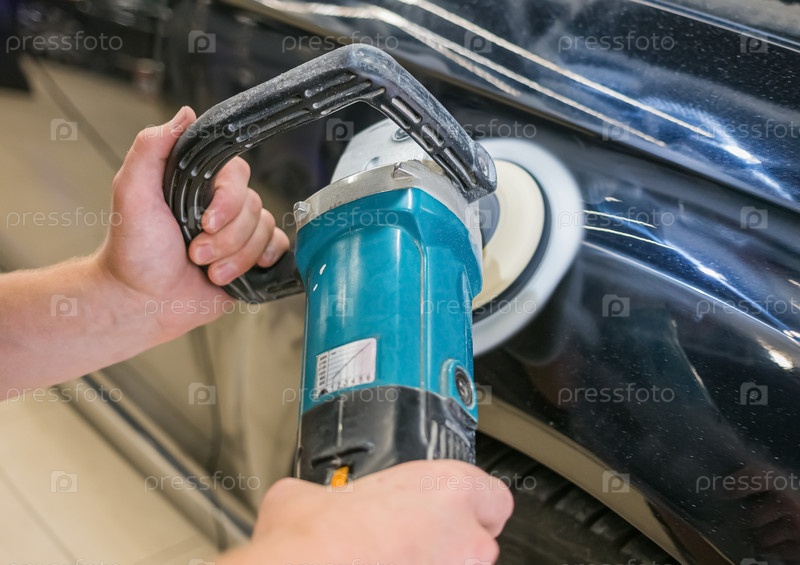 Серия по детализации автомобилей: Полировка черного автомобиля крупным планом