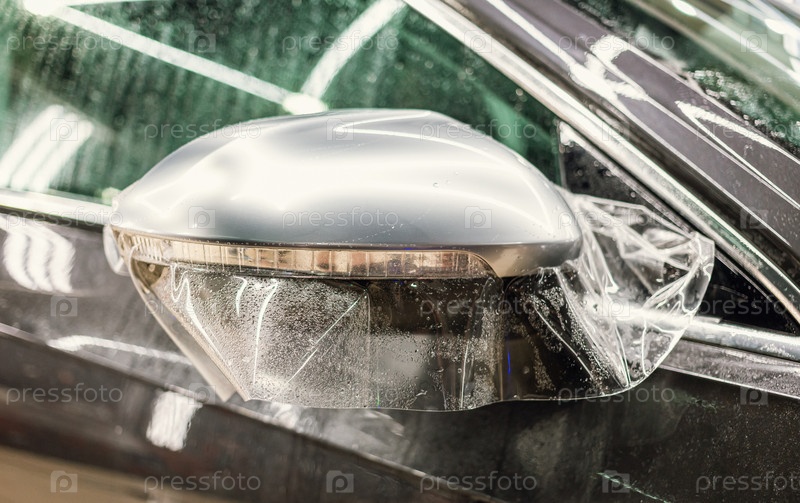 Процесс установки ППФ на боковое зеркало. Упаковка автомобиля крупным планом