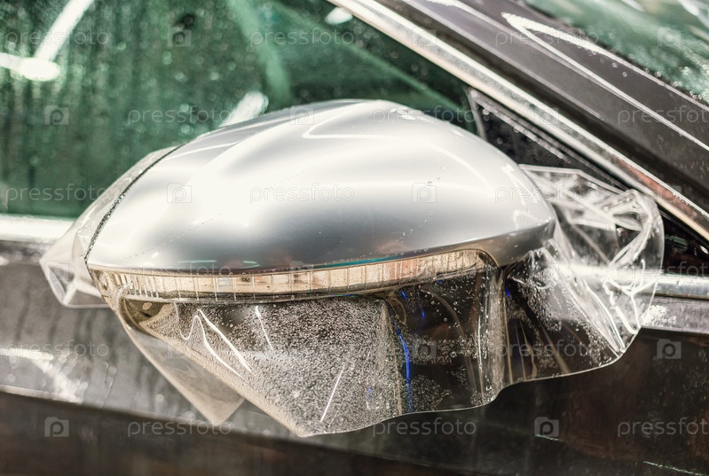 Процесс установки ППФ на боковое зеркало. Упаковка автомобиля крупным планом