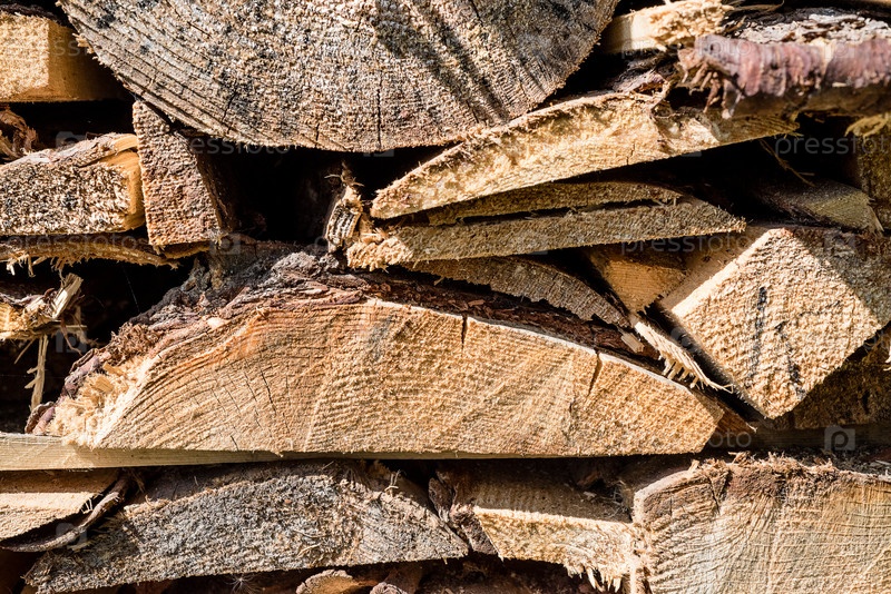 Деревянная текстура крупным планом, деревянные доски, сложенные в поленницу
