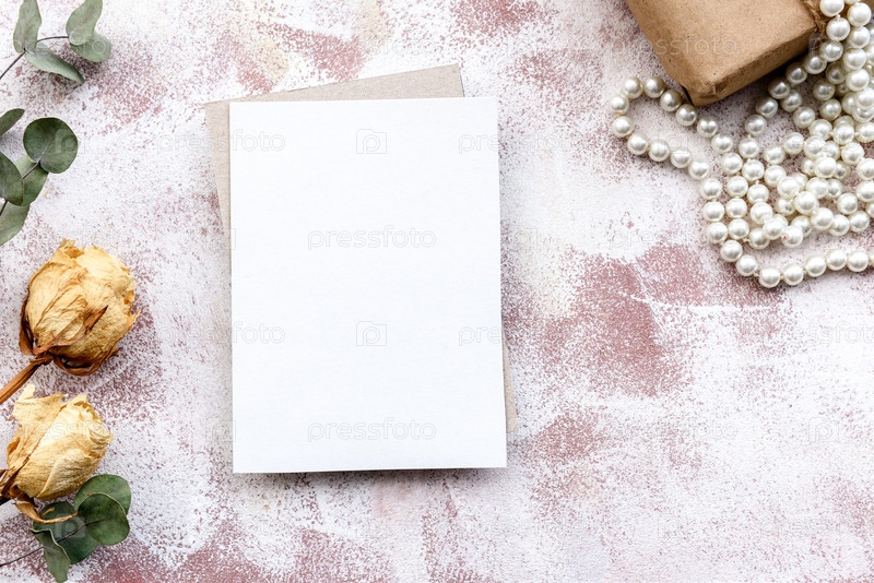 Романтический природный нежный фон - чистая открытка и веточки сухой травы и цветов. Вид сверху, крупный план и пространство для копирования. Свадебно-подарочный фонд