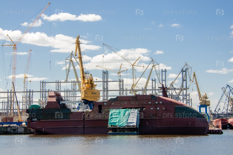 Россия, Санкт-Петербург, май 2021 г.: Строящийся корабль в бухте порта Санкт-Петербурга
