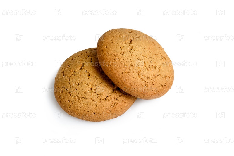 Два овсяных печенья на белом фоне