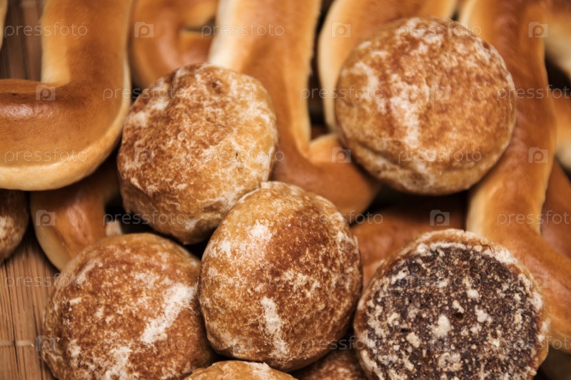 Медовый торт, бублики и печенье, крупный план