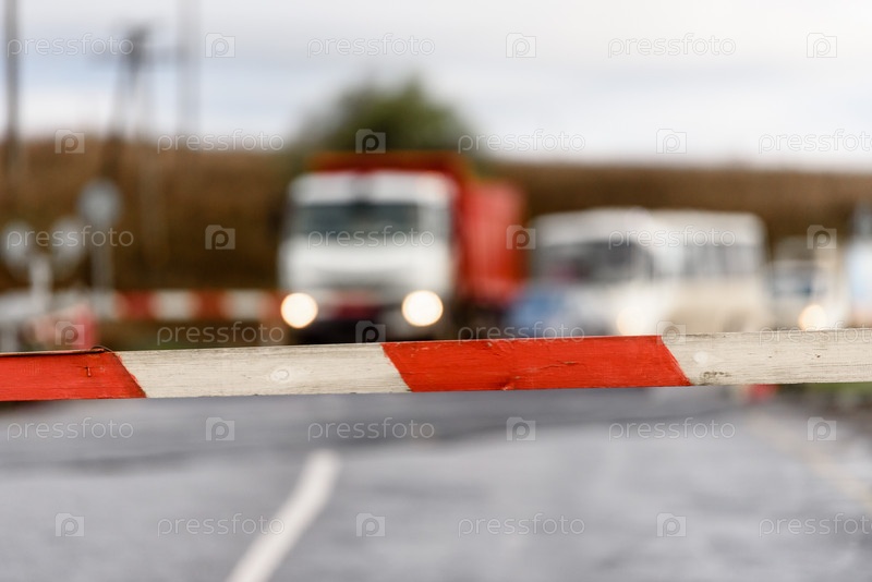 Шлагбаум закрывает проезд через железнодорожный переезд