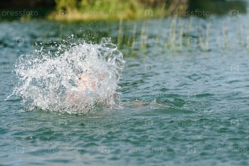 Брызги от плавающего в озере человека