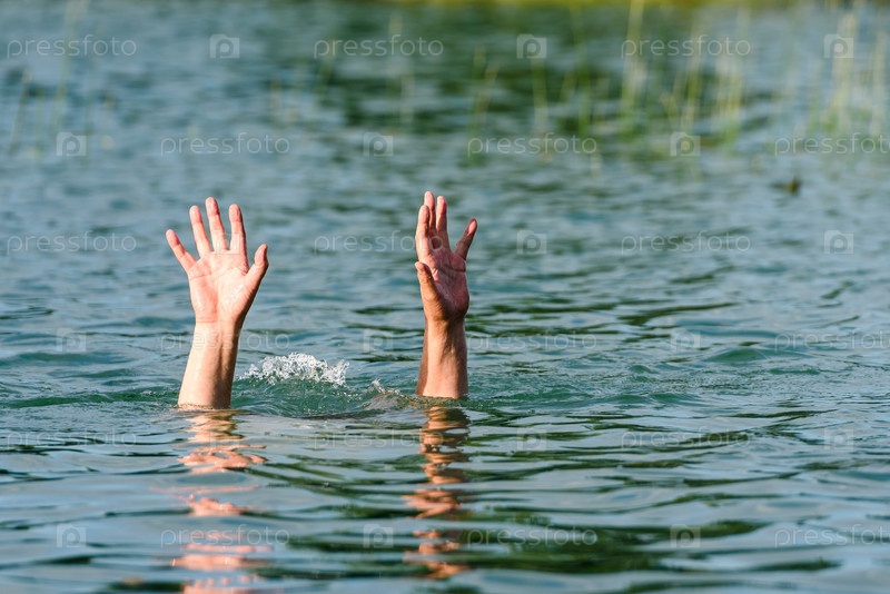 Руки торчат из воды, изображая тонущего человека